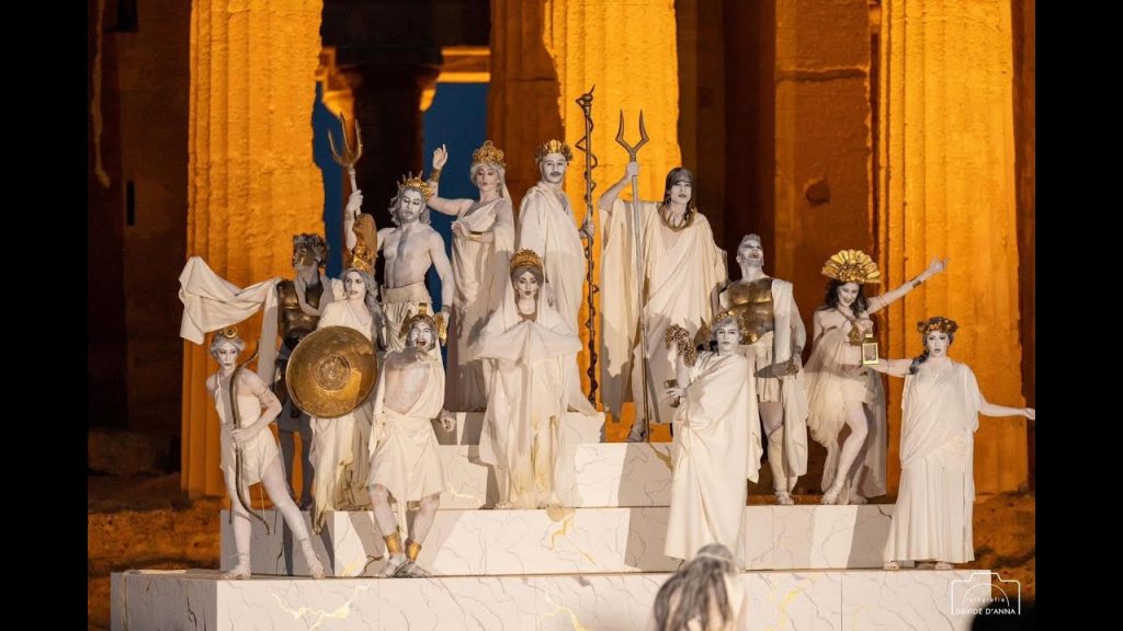 ll Risveglio degli Dei / The Reawakening of the Gods is a dream-like voyage into the world of ancient Greek mythology. The stories being told take place in a time of fantasy that never existed – yet these tales were told 2600 years ago and have survived until today. In the show, the Gods of Olympus re-awake and reveal themselves to the eyes of the spectators. The show was conceived to be performed in real archeological sites, ancient theaters, palaces, and museums, allowing the audience to experience these places in a new and inspiring way.