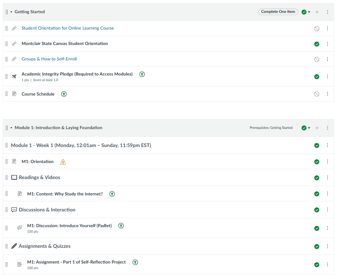 - Faculty and instructional designer review the first module to ensure a strong structure and flow that will be replicated for the remaining modules