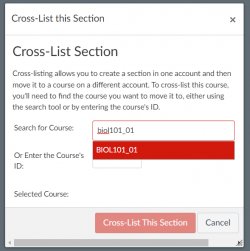 - On the right-hand side of the page, click the “Cross-List this Section” button.
