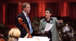 Renowned composer and recent recipient of the 2010 Pulitzer Prize in music, Jennifer Higdon, came to Montclair State University’s John J. Cali School of Music on April 19 to work with composition students and to rehearse her work, blue cathedral with the symphony orchestra. Higdon, who is the Milton L. Rock chair in composition studies at The Curtis Institute of Music, also met with faculty during her visit to the campus.