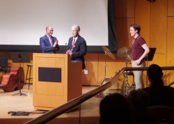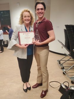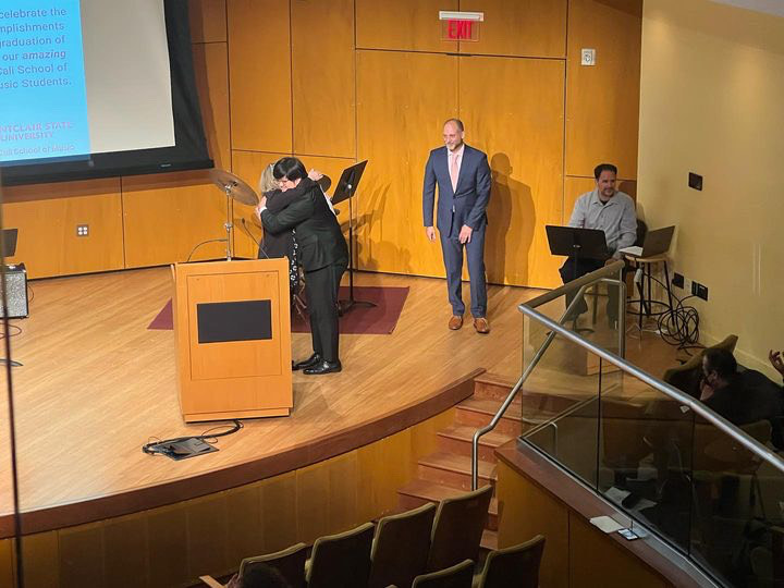 Dr. Marissa Silverman commended the Outstanding Student Teachers Nicholas Lipari-Pazienza and Jason Rosenblum, as well as the Outstanding Graduate Student in Music Education recipients Rebecca Jacobson and Kyle Cottrell. Dr. Bryan Powell returned to honor the Excellence in Popular Music Ensemble recipients Melissa Hughes and Jack Powers, while Dr. David Witten presented the Music Teachers National Association Award to Steven Viola. Prof. Kyle Ritenauer celebrated the Excellence in Orchestra Award given to Randy Léon, and Dr. Thomas McCauley recognized Excellence in Band undergraduate Emily Sullivan and graduate Olivia Dorschel.