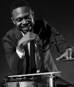 Jerome Jennings is a drummer, activist, bandleader, sideman, and Emmy Award winning composer. His debut recording ‘The Beast’ is a reflection of the every day joys and traumas of black life in the U.S. It was named one of the top three Jazz releases by NPR, received a four star rating in Downbeat Magazine, and was nominated for the prestigious French ‘Grand Prix du Disque’ award for Album of the Year in 2016. Jerome’s sophomore recording, ‘Solidarity’, released November 2019 was recognized by NPR as best music that spoke truth to power of 2019. Jerome is a pertinent performer. To date Jerome has performed, toured and recorded with legendary musicians like Sonny Rollins, Hank Jones, Gerald Wilson, Christian McBride, Ron Carter, George Cables, Dee Dee Bridgewater, Wynton Marsalis (J@LC), The Count Basie Orchestra, Philip Bailey, Henry Butler, and countless others. He has also made recordings and shared the stage with contemporary musicians Sean Jones, Camille Thurman, Jazzmeia Horn, Tadataka Unno, Christian Sands, Charenee Wade, and Bokani Dyer to name a few. The summer of 2007 Jerome earned a MM from the prestigious Juilliard School in Manhattan NY. In 2014, he passed Jazz At Lincoln Centers Swing University 301 history course: The most comprehensive study of jazz from a non-performance perspective, available. Jazz At Lincoln Center has Jerome Jennings on file as an accredited jazz scholar. Jerome was the Resident Director of The Juilliard Jazz Orchestra from fall 2017 to 2021. While on faculty at Juilliard, he designed a class entitled The Juilliard Jazz Community Project.