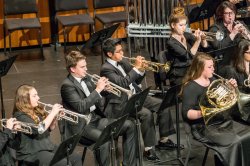 The Montclair State University Wind Symphony, directed by Thomas McCauley, is a 60 member auditioned ensemble of undergraduate and graduate students who are experienced instrumentalists. Students from all schools in the university who are in good academic standing are welcome to audition. It performs a wide variety of works from the standard band repertoire, commissioned pieces and chamber works. The Wind Symphony has appeared with such notable soloists as Donald Batchelder, Principal Trumpet of the New York City Opera, and James Markey, principal trombone of the New York Philharmonic. In 2007, the group presented the world premiere of David Gillingham’s Symphony No. 2 (“Genesis”). In spring 2010, they performed the premieres of Transformed Spring by composer and faculty member Patrick J. Burns, and Harriet by O’Neal Douglas. Recent performances have included works by Chagrin, Bernstein, Harbison, Higdon, Verdi, Colgrass and Mozart. The Wind Symphony has performed Stravinsky’s Symphonies of Wind Instruments (1947), Haydn’s Concerto for Trumpet in E-flat featuring the winner of the annual Montclair State University Wind Symphony Concerto Competition, Maslanka’s Symphony No. 4, Stravinsky’s Concerto for Piano and Wind Instruments with pianist Ronald Levy, Hindemith’s Konzertmusik für Blasorchester, and the world premiere of Elizabeth Brown’s Zeppelin.