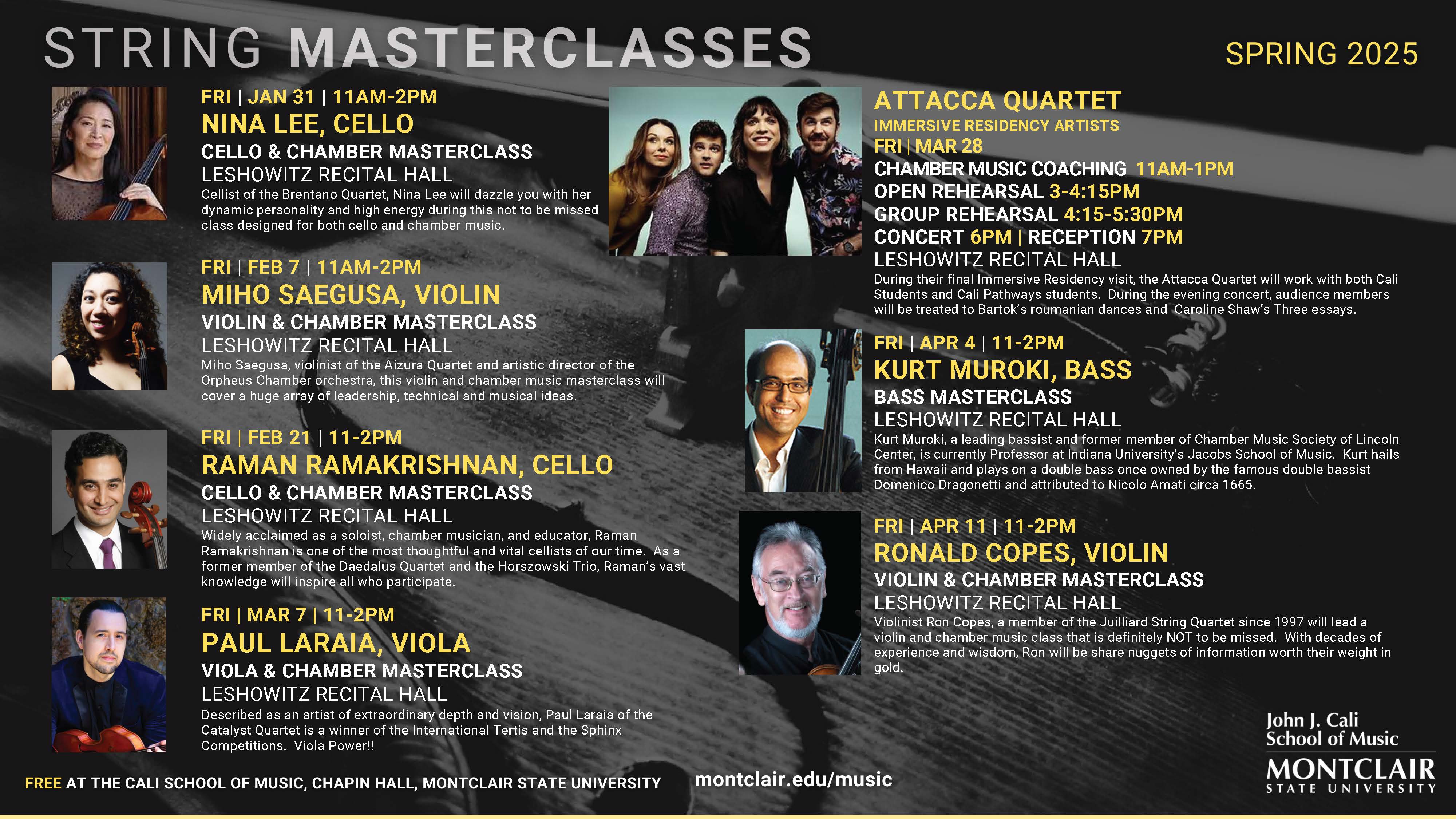 More information about The Graduate String Quartet Fellowship contact Kathryn Lockwood at lockwoodka@montclair.edu
