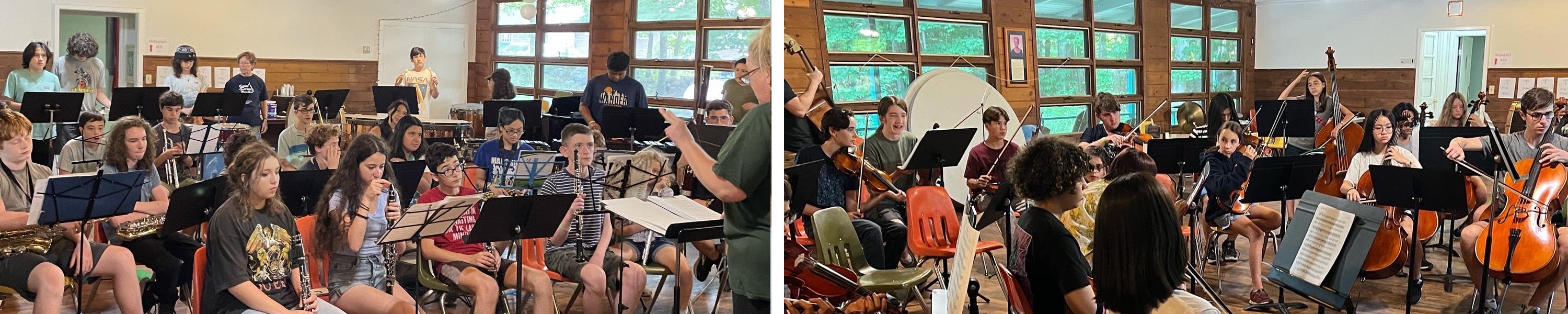 The orchestra and/or band are the primary ensembles for all strings, woodwind, brass and percussion students. A wide variety of representative works in the orchestral and band repertoire from baroque through contemporary will be rehearsed and performed. Seating in either ensemble is established by placement audition on arrival day.