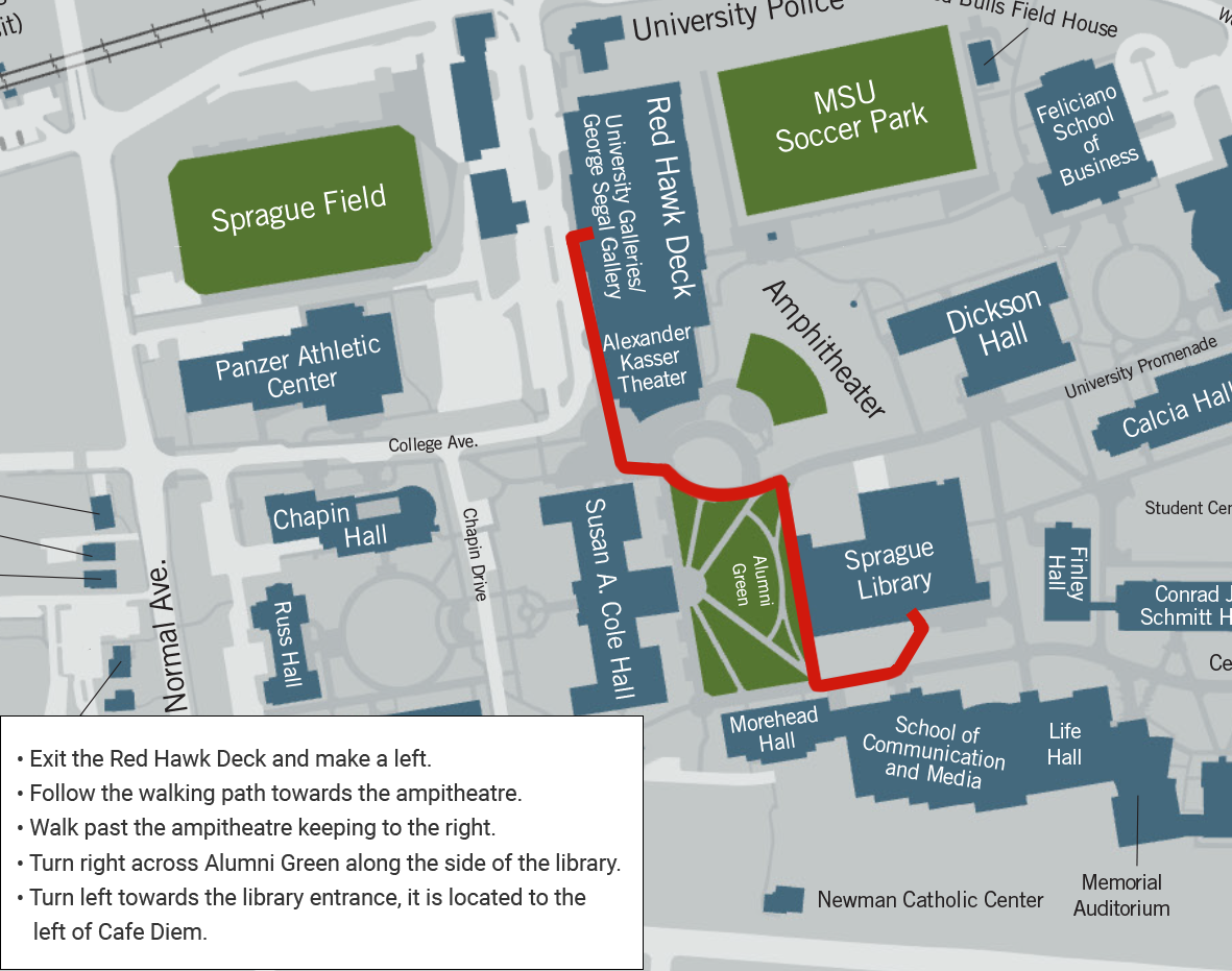 Free parking at the Red Hawk Deck. Follow these directions to walk from the Red Hawk Deck to the Library.