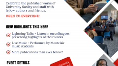 The Office of the Provost and the Montclair State University Libraries will be hosting a reception on Thursday, April 16 from 2:00 – 4:00 p.m. to honor all those faculty and staff at Montclair State University and Bloomfield College who have created, edited, or translated a book or a recording this year. New Highlights This … Continue reading University Authors 2026