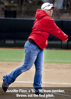 The softball program honored its 1992 and 1997 NCAA Division III Softball Championship teams prior to the Red Hawks doubleheader with The College of New Jersey in April.