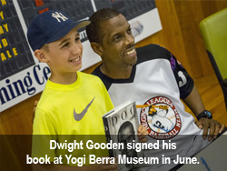 Legendary NY Mets pitcher Dwight “Doc” Gooden visited the Yogi Berra Museum and Learning Center in June to sign copies of his memoir, Doc. The book details his life as a professional baseball player and his struggle to recover from cocaine addiction. During his career, Gooden was named Rookie of the Year in 1984 and received the Cy Young Award in 1985. He eventually overcame his addiction and is currently on a book tour.