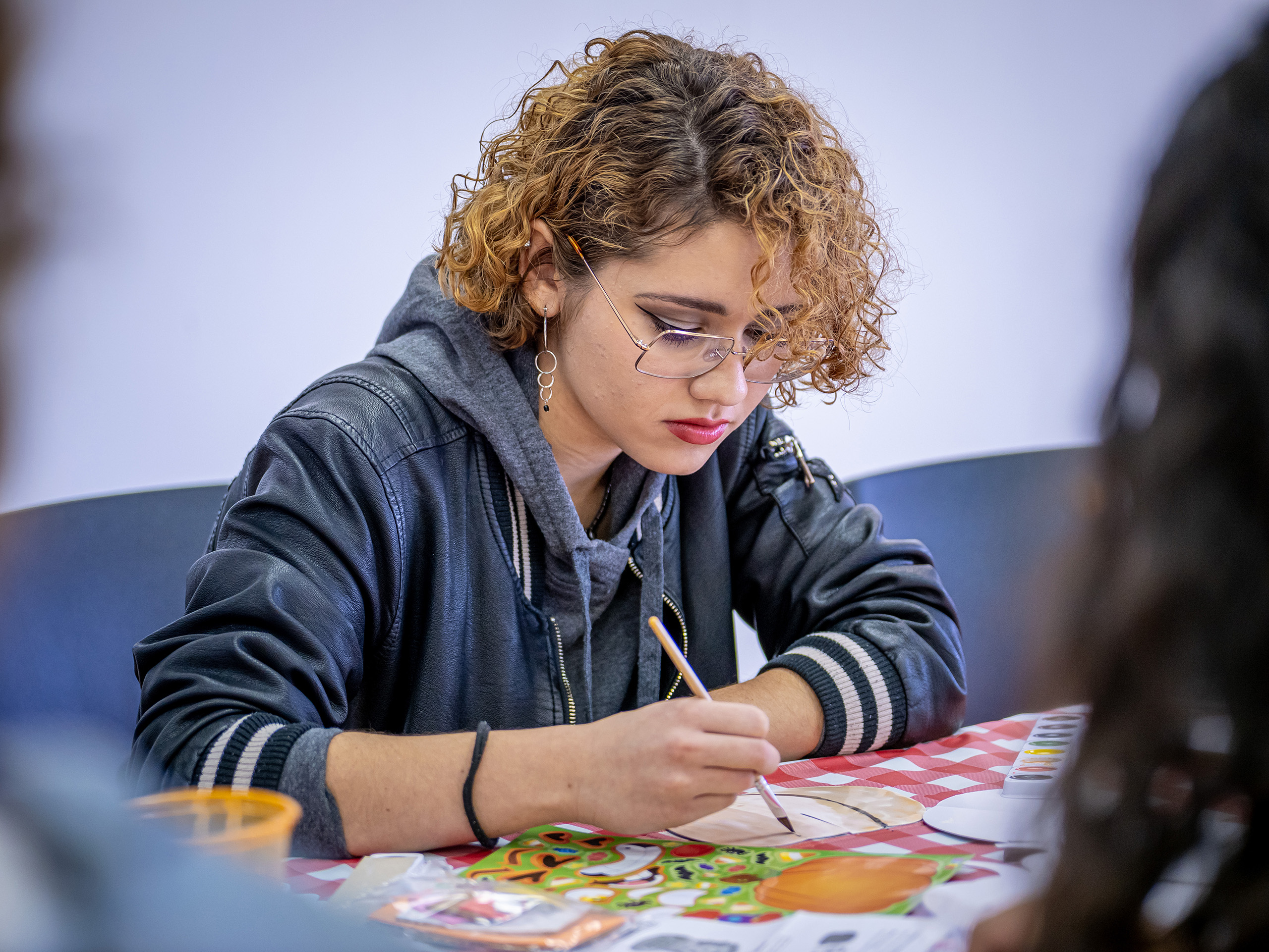 Responding to the longing for social interactions, the division has run nearly 700 programs and outreach activities since September – and students are attending in record numbers. Rocky's birthday party in October, traditionally a campus favorite, this year attracted a record 600 students, plus mascot pals from other universities. "We're seeing that with other types of events all over campus, whether it's attending a club and organization meeting, making a tote bag or painting," Soufleris says.