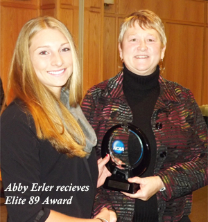 Field hockey center back Abby Erler received the Elite 89 Award for the NCAA Division III Field Hockey Championship, a prestigious award for scholar-athletes, at a pre-tournament banquet at William Smith College in Geneva, N.Y., in November. The NCAA’s Elite 89 Award honors scholar-athletes who compete at the national championship level in their sports. It is presented to the athlete with the highest cumulative grade point average participating in each NCAA championship.