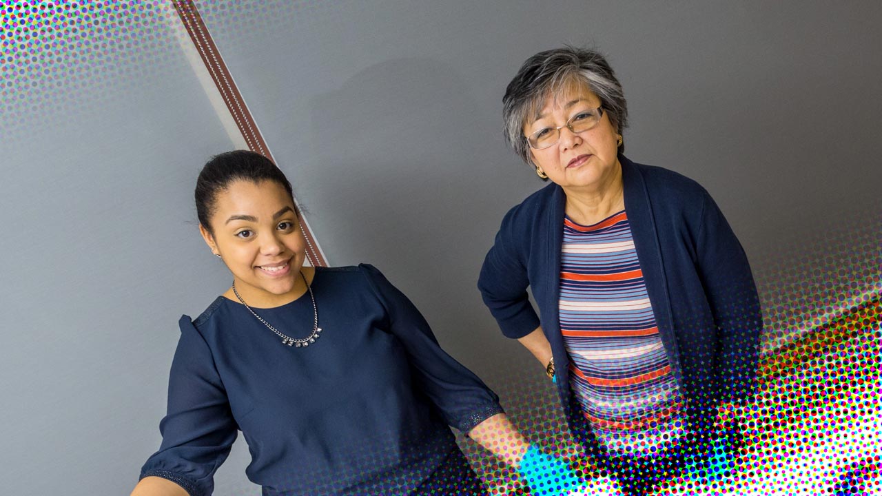 George Segal Gallery Director Teresa Rodriguez, right, and assistant Coral Payano unpack the donated Andy Warhol prints.