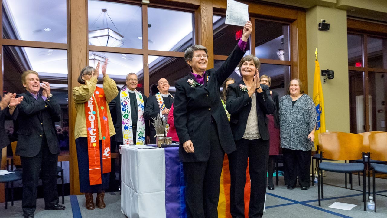 It took 11 years for New Jersey to grant same-sex couples the right to marry. Back in 2002, at a time when no states recognized gay marriage, Meneghin, director of web services, and Kilian, an Episcopal parish administrator, were invited by Lambda Legal to join six other same-sex couples in a lawsuit seeking the right to marry in New Jersey.