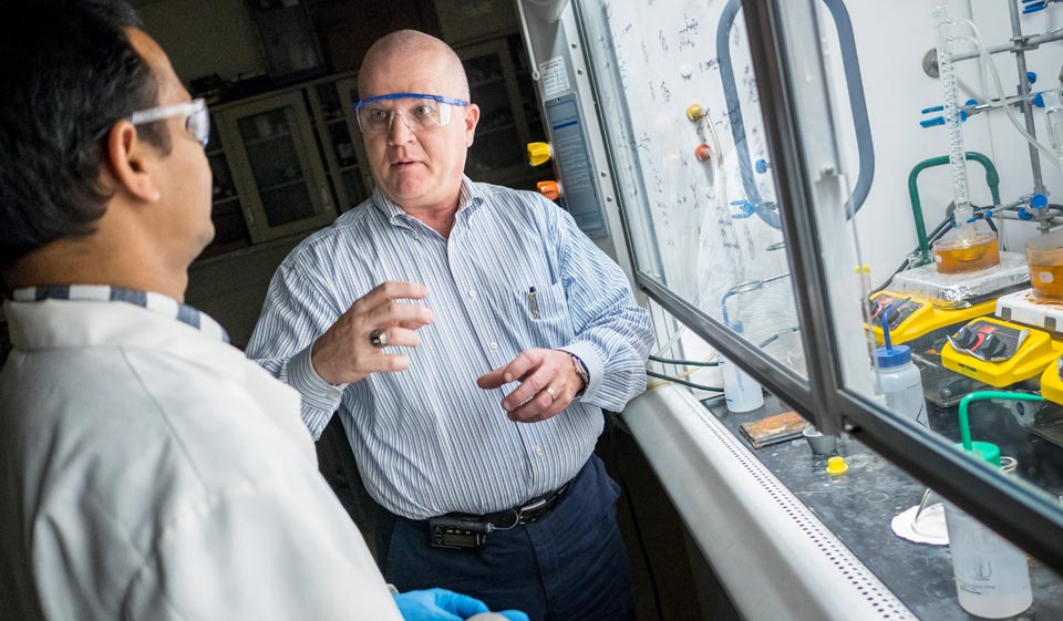 David Rotella, right, talks with fellow researcher Sreedhar Tummalapalli about their work to find an antidote to the lethal botulinum toxin.