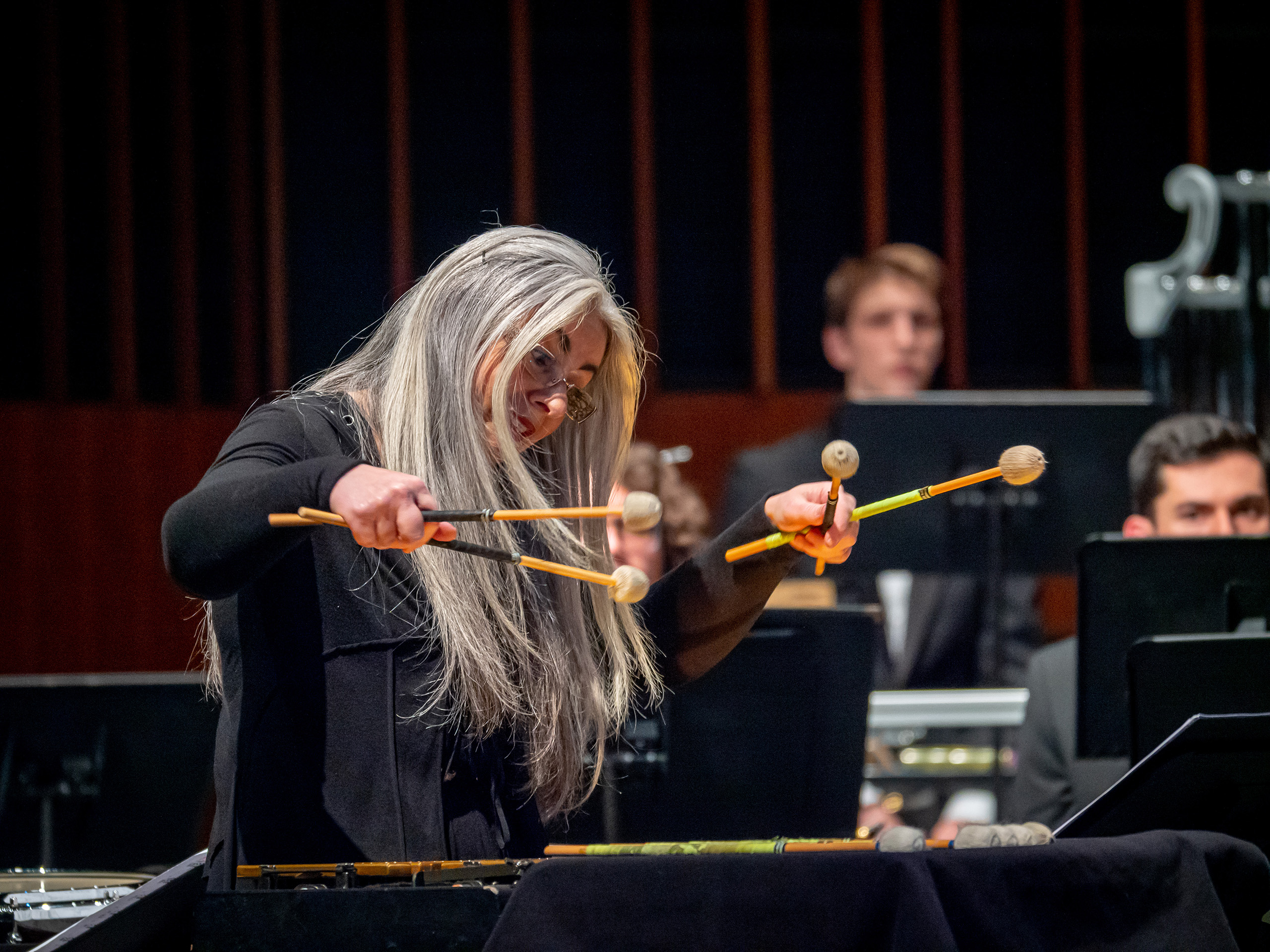 For Lornaa Morales, a classical percussionist in the Music Therapy program, “sharing our art form in a venue full of people who were there to appreciate the arts was one of the most rewarding feelings ever. At the height of the pandemic, we rehearsed in a parking garage in hopes that we might soon return to normalcy, so this experience was an absolute gift.”