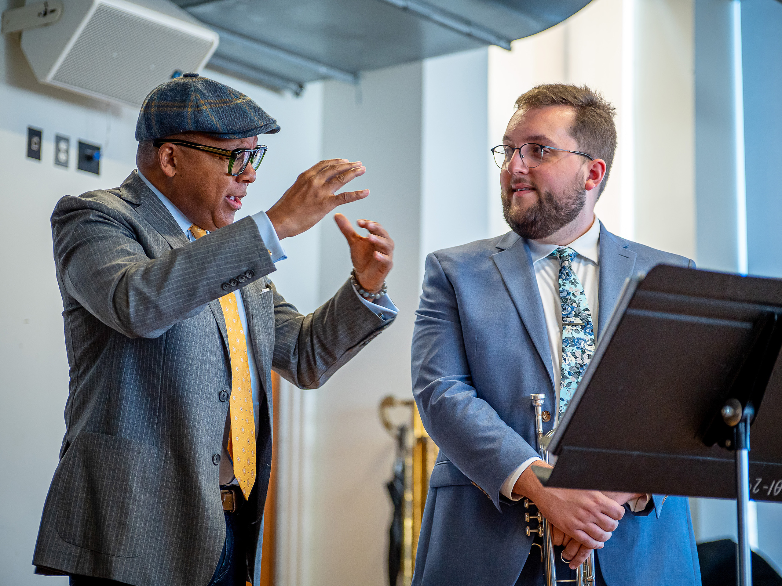 “I immediately got the vibe that his focus was more about being with people through music than being with musicians. He was focused on the humanity aspect of everything,” says Ard, who graduated in May with a degree in Music Performance. “He’d put his hand on your shoulder and say, ‘You just played, we’ll talk about it, but let’s remind ourselves we’re not just trumpet players, we’re people.’ It was a big thing with Wynton. I played a classical piece and all of his comments were based on things not on the page.”