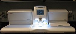 The Nikon C2 Plus is a point scanning confocal microscope with four channels: 405, 488, 561 and 640nm excitation. It is equipped with four solid state laser lines (405, 488, 561 and 640 nm) and is able to take images of up to 2048 x 2048 µm pixels resolution. It provides an “X-cite” 120 LED system for fluorescence and filters for widefield using DAPI, GFP, and Tex Red filters. The objectives for the Ti system are 10x, 20x, 40x, 20x oil, 40x oil, 60x oil, and 100 x oil, all with DIC capabilities. Detectors include three standard Photo-multiplier Tubes (PMTs), pco.edge 4.2 scientific CMOS camera, and a transmitted detector. The scan head is attached to a fully automated Nikon Ti microscope and entirely controlled by the NIS-Elements C software. Extended life experiments are facilitated by a Nikon Perfect Focus System that continuously determines the distance to the coverslip.