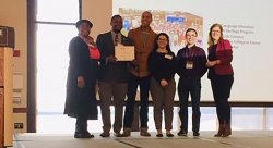 On 28 February, the French Embassy awarded the Montclair State University Cercle Français (French Club), a France on Campus award. Katrin Gebhard, Higher Education Attaché at the French Embassy, traveled to campus to document the award-winning project and to present students Evrans Dangervil, John Mentor, Dante Sterling, Gerry Plinio, and Noah Johnston with a certificate during the annual Montclair State University French Day.