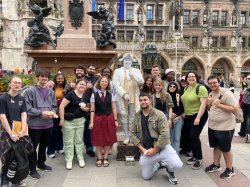 “Whatever the student’s major is, I hope they come back from this trip feeling like they have a deeper understanding of European history and life today,” Dr. Herold remarks. His favorite moments were those when the whole group had the chance to return to a classroom (one was provided by the Ludwig-Maximilians-Univerisity Munich and one by the Center for Interreligious Dialog of the Protestant Church in Berlin) and discuss their experiences between fascist aesthetics and propaganda, representations of the Holocaust, and the politics of memory in 21st-century Germany.