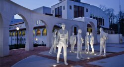 The sculpture – a collection of seven bronze figures with white patina – is one of Segal’s best-known works and was a gift to Montclair State by the George and Helen Segal Foundation in 2006. Located outside the University’s oldest building, College Hall, the life-size figures are on display throughout the year.