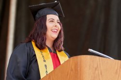 Sophia Voglino graduated with a Bachelor of Fine Arts in Production and Design. She has worked behind the scenes on a number of Montclair State theater productions, but for the College of the Arts Convocation, starred on stage as the student speaker.