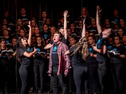 In the three months 190 students have studied Considering Matthew Shepard, they have channeled the emotions the music elicits – both inside and outside this rehearsal space. “There’s a convergence of energy here,” says Sarah Peszka, a senior Music Education major from Philadelphia. “It’s turned everything upside down.”