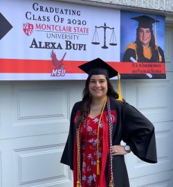 Alexa Bufi of Saddle Brook, New Jersey, was happy a drive-by parade allowed her grandparents to participate. She recalls sitting in the Montclair State bleachers watching the Convocation for her older brother, Carmine Bufi ’14, turning to her mother with a promise, “When I go to college, I’m going to graduate with honors.”