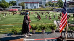 The initial 23 outdoor commencement ceremonies on Sprague Field were made possible once New Jersey Governor Phil Murphy raised the limit on outdoor events to 500 people. With one day’s small ceremonies postponed and combined because of weather, the University reduced the number to 21 ceremonies still under the governor’s guidelines, all spaced out with time between each one for spray sanitation of the stadium, with the last ceremonies scheduled for Friday, July, 24