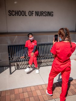 Even with most Red Hawk Day events happening virtually, many first-year students explored campus, learning their way around while wearing face coverings, observing social distancing and expressing their appreciation for the University providing them with a hybrid experience for the fall that includes some face-to-face, as well as online course options.