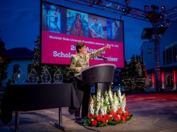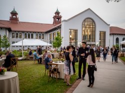 Under the stars and a canopy of fairy lights, a festive outdoor reception that followed COVID-19 safety protocols enabled guests to come together in-person in front of the newly renovated and iconic College Hall and for an awards program and student performance, which also was live-streamed from the University’s landmark Amphitheater.