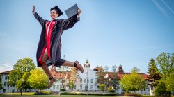 In a photo that captured the spirit of Commencement, Caroline Gutierrez shoots confetti from atop the Red Hawk statue in celebration of her BA in Psychology – a degree she earned in just three years. She’s one of the first of the University’s Presidential Scholars to graduate. “I will forever treasure every moment I had at Montclair, and will always carry all I have learned here – in and outside of the classroom – with me,” she says.