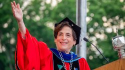 In a show of respect on what was her 175th and final Commencement ceremony, employees lined Sprague Field as Cole walked off, applauding her after she was presented a bouquet of flowers.