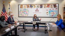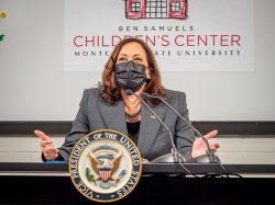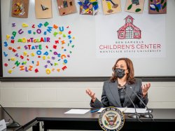 Vice President Kamala Harris, Congresswoman Mikie Sherrill (NJ-11) and Governor Phil Murphy visited the Ben Samuels Children’s Center on the Montclair State University campus on Friday, October 8 to highlight the importance of federal funding for child care.
