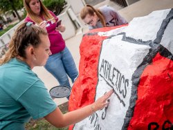 “Most people would think it’s just a rock, but it’s very important to these student organizations,” says Associate Director of Student Involvement Julie Fleming. “I think in a lot of ways it cements their place on this campus and establishes them as part of our campus community.”