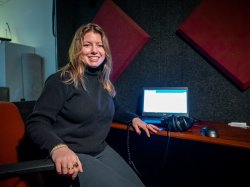 In her graduate-level study, Stewart is researching the very thing with which she was diagnosed: unilateral hearing loss in adolescents; she’s comparing how their speech perception compares to their “typical hearing peers.” Under Hitchcock’s guidance, she is working with research participants on various tasks in order to record how they say, produce and repeat sounds or words, which will be contrasted with people who have no hearing impairments.