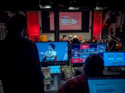 Complementing the on-screen cast, students worked behind-the-scenes filming the live broadcast and reporting a story they would title “Soaring and Streaming.”