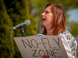 Gatrall also taught the crowd to say “No to War” in Russian: “Niet Voine.”