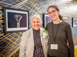 Junior Ethel Guelfguat, a Biology major and one of this year’s scholarship recipients, was on hand to meet Stephens-Rich, whose generosity is helping pave her academic journey.