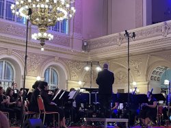 The Montclair State University Wind Symphony conducted by Thomas McCauley performed in Prague, Czech Republic, in late July at the World Association for Symphonic Bands and Ensembles (WASBE) Conference, a festival of symphonic wind music held at the Žofín Palace.