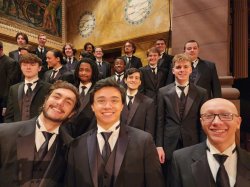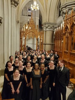 Altos in their formal attire pose for a selfie in Newark’s Cathedral Basilica of the Sacred Heart.