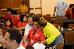 Connecting with and engaging families on a Sunday to make it easier for them to attend was a new component of this year’s HSCI, according to Associate Provost for Hispanic Initiatives and International Programs Katia Paz Goldfarb. Parents were able to attend a luncheon and workshops when they dropped off their children for their campus stay. Goldfarb says the HSCI staff welcomed 150 family members, who were able to learn about everything from financial aid to admissions and enrollment; information was presented in both English and Spanish. They also heard from a panel of alumni and professionals who talked about helping their children transition to college.