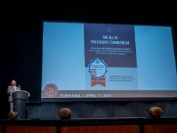 Montclair State University President Jonathan Koppell hosted a Town Hall meeting on Wednesday, April 17 attended by faculty and staff, where he reflected on a year of “progress, promise and partnership,” notably the strengthening bonds with the city of Paterson, including the celebrated opening of the Charles J. Muth Museum of Hinchliffe Stadium and One Square Mile initiative, where Montclair students are working within the community teaching English-as-a-new-language for Spanish- and Arabic-speaking residents.
