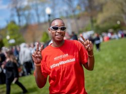 A trifecta of traditional end-of-semester events unfolded simultaneously on Thursday, April 25, as Montclair State University celebrated One Day for Montclair, raising funds for scholarships and programs, embracing its rich cultural diversity with World’s Fair Day, and welcoming the children of campus community parents for Take Your Child to Work.