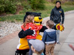 Ashlee Martellacci reflected on the early preview of college life for her 5-year-old son, Vincent, and the other children who came to campus. “It’s a great opportunity to introduce higher education as something that is important, something that they can learn about now, instead of waiting until they’re older. But at the same time to see a different side of us as parents, in terms of what we do and what that looks like,” says Martellacci, who works in the Global Center on Human Trafficking and as an adjunct professor in the Department of Social Work and Child Advocacy.