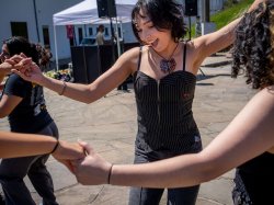 At the Amphitheater, student performances included a demonstration of Chinese martial arts, and Latin, Palestinian and Korean dance. More than 50 tables showcased a wide variety of campus offerings, from World Languages and Cultures to the Office of Student Belonging, and global cuisine.