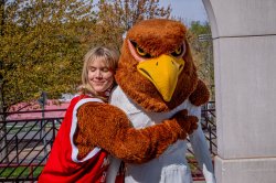 Team Rocky duties kept the new graduate busy during the fall ’23 and spring ’24 semesters. Fingerlin says she had 125 shifts as either a handler or as Rocky, 42 of them this semester alone. “I just love it. I love being able to work with people on the team and go out and do fun events like the football games, Accepted Student Day and anytime they’ve got a DJ in the quad, I love being there. It’s so much fun.”