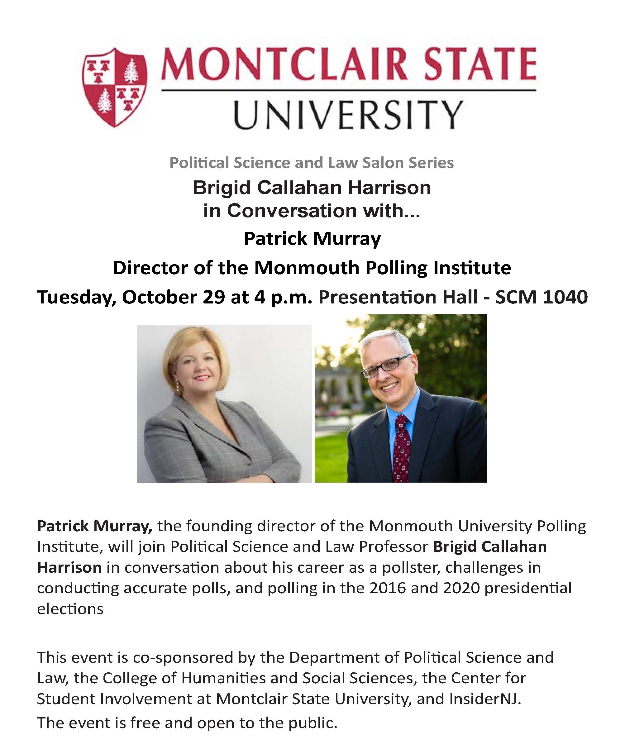 Patrick Murray, the founding director of the Monmouth University Polling Institute, will join Political Science and Law Professor Brigid Callahan Harrison in conversation about his career as a pollster, challenges in conducting accurate polls, and polling in the 2016 and 202 presidential elections.