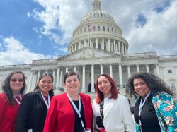 - Debbie Rosario Hernandez, Kassandra Llanos Orellana, and Maria Castellano recently travelled with Dr. Katia Paz Goldfarb, Associate Provost for Hispanic Initiatives and International Programs to the Hispanic Association of Colleges and Universities (HACU) Capitol Forum in Washington, DC. In addition, Maria Castellano (pictured, top left) is completing a semester-long internship at the Permanent Mission of the Dominican Republic to the United Nations.