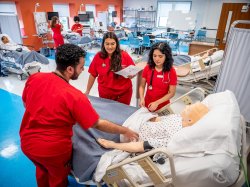 The School of Nursing was established in 2016 to meet the region’s growing demand for highly qualified nurses. Accredited by the Commission on Collegiate Nursing Education, the School offers specialized facilities, including mediated classrooms, a nursing skills lab, an anatomy lab, a home care lab, a mock quarantine room, and high-fidelity simulation labs outfitted with computer interfaced mannequins. A new online MSN program provides concentrations in clinical trials research, nursing education, and, in collaboration with the Feliciano School of Business, in nursing administration.