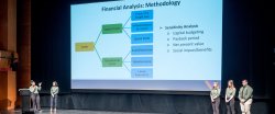 Teams make site visits to their host corporations at least once throughout the summer and meet weekly with company representatives to discuss the progress of their deliverables. Students are trained, and conduct the majority of their work, on site at Montclair State University under the supervision of a leadership team. They work intensely full-time each for ten weeks. At the end of the program, they present their work in a comprehensive written report to their hosting organization and give a group TED-style presentation to a broad audience.